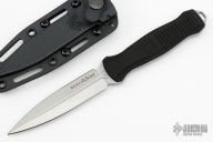 The Benchmade 133BK Fixed Infidel is a full-tang tactical fixed blade designed after the iconic Benchmade Infidel out-the-front knife. Its double-edged blade is made from resilient D2 tool steel. Grooved, black anodized aluminum scales provide absolute grip security. Includes a Tek-Lok compatible Boltaron sheath.