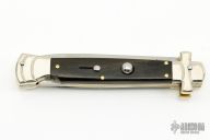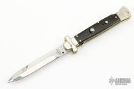Angelo Campolin Sr. was born in 1923 in Maniago, Italy. He worked on perfecting his knife making skills before WWII and at this time made his first switchblades. After the war, in 1947 he started his company and made 30 stilettos with the marking “Angelo Campolin”. In the 1970’s Angelo’s son Gianni started to work in the company and they were specializing in folding hunting knives and also manual folding stilettos for the Robert Klaas company in Solingen Germany with their Kissing Cranes mark. In 2002 American switchblade collectors Dan Fuller, Brad West, and Tim Zinser were visiting Maniago and enjoying a few glasses of wine in a bar with Angelo Jr. and Gianni. The discussion was about a new name for some knife projects they wanted to pursue. It was Brad West that suggested the tang stamp should be AGA, for Angelo, Gianni, Angelo, thus representing three generations in the knife making business. The Campolins liked it and it stuck. In the beginning it was just a few items, but grew to the point where now there are 12 models and different scale options. The goal has been to offer quality switchblades using the old methods and traditions. Being a collector himself, Angelo Jr. knows what others like. The company headquarters has moved to Austria with production still in the original Maniago shop, as well as the others in Maniago that produce the knives for A.G.A. Campolin.