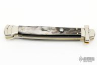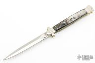Angelo Campolin Sr. was born in 1923 in Maniago, Italy. He worked on perfecting his knife making skills before WWII and at this time made his first switchblades. After the war, in 1947 he started his company and made 30 stilettos with the marking “Angelo Campolin”. In the 1970’s Angelo’s son Gianni started to work in the company and they were specializing in folding hunting knives and also manual folding stilettos for the Robert Klaas company in Solingen Germany with their Kissing Cranes mark. In 2002 American switchblade collectors Dan Fuller, Brad West, and Tim Zinser were visiting Maniago and enjoying a few glasses of wine in a bar with Angelo Jr. and Gianni. The discussion was about a new name for some knife projects they wanted to pursue. It was Brad West that suggested the tang stamp should be AGA, for Angelo, Gianni, Angelo, thus representing three generations in the knife making business. The Campolins liked it and it stuck. In the beginning it was just a few items, but grew to the point where now there are 12 models and different scale options. The goal has been to offer quality switchblades using the old methods and traditions. Being a collector himself, Angelo Jr. knows what others like. The company headquarters has moved to Austria with production still in the original Maniago shop, as well as the others in Maniago that produce the knives for A.G.A. Campolin.