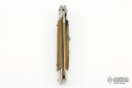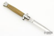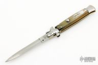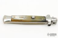 This 9" Swivel Bolster features a tumbled blade with false top edge. The handle has stainless steel bolsters, front and rear, honey horn scales, brass liners, stainless spring. Has a few light scratches, otherwise excellent condition.