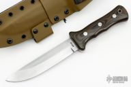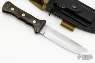 "These knives were formally known as the original "TRACKER" knives from the registered trademark, which I was the first to own & stamp on my blades during the '90's. After a brief retirement & the release of the 2003 Paramount Pictures film "The HUNTED" in which my Model "C" TRACKER knives were used & displayed, I resumed making my original TRACKER knife patterns but changed the name to avoid questionable trademark right disputes. In 2003 I was the first to coin the name "WSK" or Wilderness Survival Knife to this design. With over 22 years of refinement from personal service, feedback from customers & extensive field testing & use by top survival instructors & Elite military from around the world, my WSK knives have evolved into perfection & have repeatedly proven themselves in the field from real world survival to combat in many of our country's latest conflicts. Today you will see many variations by other makers but none can match the history, function & performance of my knives which are still the standard by which all others are judged. All the WSK knives I offer continue to be individually hand-crafted by myself from the contouring of the blades to the hand cut saw teeth to ensure the highest degree of craftsmanship & performance. Each blade is crafted from high carbon tool steel & skillfully deferentially hardened & tempered for superior edge holding & blade resilience. Handle grips are permanently fastened by stainless steel Loveless bolts with solid brass nuts, lined lanyard hole and guaranteed never to loosen under the hardest use. My sheaths are personally crafted for a custom fit from heavy leather that's been double stitched & finished for long wear. My field-grade knives retain all the same quality construction, differential heat treatment & performance as my high grade collectible knives but come with less costly cosmetic refinements for more practical field use."