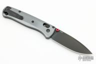 The Bugout features a drop point blade with a flat dark Cerakote finish. It's a manual opener with ambidextrous thumb studs. This AXIS lock has a milled aluminum frame and black hardware, a black mini deep-carry pocket clip, and a lanyard hole.  Includes original box and papers.  Excellent Condition.