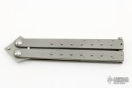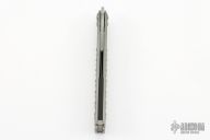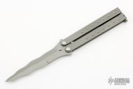 This Kris Balisong from Alan Elishewitz features a bead blast finished blade. The handle is comprised of bead blasted titanium handles with black G-10 backspacers. Includes a nylon belt sheath. Rare bird. Marked Moro on the blade. Excellent condition.
