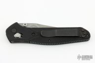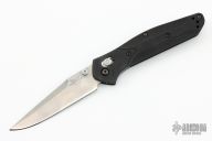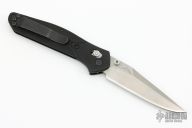 This Osborne designed Benchmade features a stonewashed plain edge blade, black aluminum handle, tip up reversible stainless steel clip. Axis lock mechanism. Has some light scuffs, excellent condition otherwise.