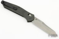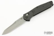 The Warren Osborne designed Benchmade 940 is a popular knife for good reason. It's a comfortable everyday carry knife with its slim design, great ergonomics and lightweight. The 940-1 has a premium CPM-S90V steel blade with a plain edge and a stonewash finish. The carbon fiber handle has stainless steel liners and blue anodized aluminum barrel spacers. The AXIS lock and reversible pocket clip make the knife usable for right and left-handers. Includes the original box and papers. Excellent Condition.