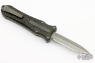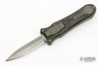This knife is a Deadlock Model B. It has a tumble finish dagger shape blade. The handle has a carbon fiber and titanium frame with a tip down spring clip, bead blast finish titanium. The thumb slide on the handle is also titanium and handle has titanium overlays. Comes with a drawstring bag. Grant and Gavin Hawk set out to create a double action OTF with no blade play.... They did it, NO blade play. Comes with drawstring bag, tool and lube. Excellent Condition.