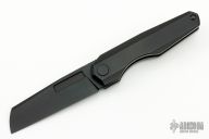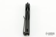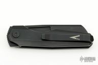 This Neuron by Vero Engineering features a black finished blade with notched thumbrest and flipper. The handle has black titanium frame, tip up titanium clip with hidden screws. Rides on bearings, nice double detent and blade seating. Comes with original box.  #576. Excellent condition.