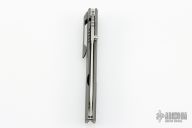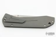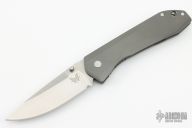 This Ti Monolock by Benchmade features a tumbled drop point blade with single thumbstud. The handle is bead blasted titanium with tip down clip and stainless steel barrel spacers. Nice detent, lockup and blade seating. Has ball bearings. Includes the original box and papers.  Excellent Condition.