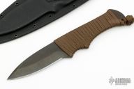 This Blood Shark by Tracker Dan features a black blade with .155" blade stock and .990" blade depth. The handle has flat paracord wrap. Comes with a kydex sheath and the knife will fit in either direction. Excellent condition.