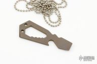 The Atwood Wrunt is made of titanium. This super compact and minimalist keychain tool features a cap lifter, 1/4-1/2" SAE hex wrnch set and a screwdriver/pry tip, all in one tiny package. The small size blends in easily with your keys and will be there when you need it. This one is titanium and comes with bag and card. Has a couple of light scuffs, otherwise excellent condition.