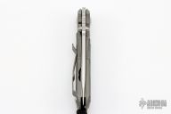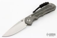 This Small Inkosi by Chris Reeve Knives features a tumble finished drop point blade with dual thumb studs and notched thumb rest. The handle has a bead blasted titanium frame with black canvas micarta inlays over a single barrel spacer, tip up titanium clip. Includes the original box and papers dated October 20, 2020.  Has some scuffs, otherwise good condition.