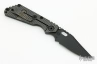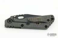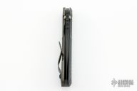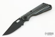 This SNG by Strider Knives features a black blade with notched thumbrest and thumbhole. The handle has a Frag pattern gray/black G-10 and flamed titanium frame with matching tip up clip. Nice detent, lockup and blade seating. New condition from the 2023 CCKS.