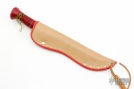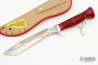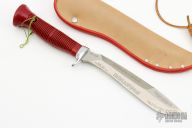 This Sea Hunter by Puma Knives features a recurved drop point blade with sharpened top edge and notched thumb rest. 0.197" blade stock and 1.096" blade depth. The handle has an aluminum guard and ribbed rubber handle with lanyard tube and leather lanyard over hidden tang construction. Includes leather sheath with belt loop. Excellent condition.