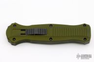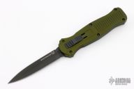 The Benchmade Infidel is outfitted with a durable lightweight aluminum handle and a double-edged dagger blade. A front loaded firing button provides smooth double action deployment and retraction with an easy to use design. Item includes a deep-carry pocket clip for tip-down carry. Features: