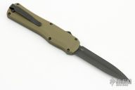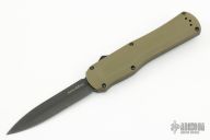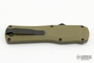This Autocrat model has a green G-10 handle and a black finished dagger blade. The Autocrat is the first OTF offering from Benchmade featuring a milled composite G-10 handle. It is a high performance tactical auto, defined by both speed and style. The ergonomic handle successfully blends the durability and wear resistance of G-10, black coated hardware and components. Item comes complete with a reversible deep-carry pocket clip. Features: Spine-fire release OTF automatic action for rapid, one-hand deployment. Reversible tip-down pocket clip allows for left or right side ambidextrous carry. Premium CPM-S30V double-edge dagger blade provides excellent strength and edge retention. Comes with original box, drawstring pouch, and papers. Excellent condition.
