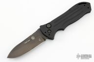 This Point Man Auto from Masters of Defense features a black spear point blade with swedge, notched thumbrest, dual thumbstuds and partially serrated edge. The handle has a black anodized aluminum.  Black stainless steel tip down pocket clip.  Includes the original box.  Excellent Condition.
