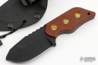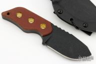 This Lil Roughneck by Tops knives features a black coated blade with notched thumbrest, .378" blade stock and 1.468" blade depth, full tang construction. The handle has natural canvas micarta scales. Comes with a kydex sheath. Excllent condition.