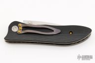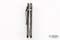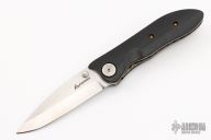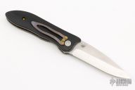 This linerlock by Allen Elishewitz features a satin finished blade with a dual thumbstuds. The handle has black g-10 scales, anodized titanium liners and barrel spacers. Nice blade seating, lock up, and detent. Excellent condition.