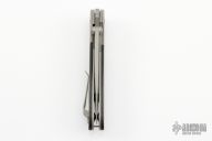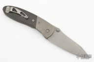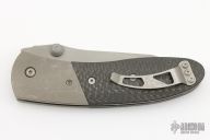 This Lightfoot LCC M/A by Microtech Knives is a Greg Lightfoot design, it has a stonewashed blade with dual thumbstuds and a notched thumbrest. The handle has bead blasted titanium bolsters, carbon fiber scales, stainless steel liners and clip, tip up carry. Dated 09/2000, #2076. Has some scuffs and scratches, otherwise great user condition.