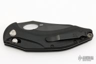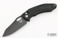 This 808BK Loco by Benchmade Knives features a black blade with thumbhole. The handle has black G-10 scales with black stainless steel liners, stainless steel backspacers, tip up black stainless clip, lanyard hole at the butt. Excellent condition. Includes original box and papers.