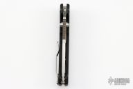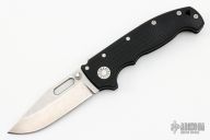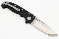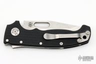 This AD20 by Andrew Demko features a stonewash finished blade with notched thumbrest, thumbhole and dual thumbstuds. The handle has a black G-10 frame with a tip up stainless steel clip and "Shark" lock release on the spine. Comes with original box. Excellent condition.