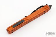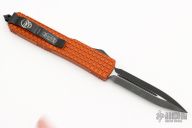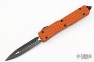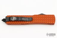 This Ultratech OTF automatic by Microtech features a D/E black blade. Frag pattern orange aluminum frame with black tip down stainless steel clip. Dated 05/2015. Excellent condition. Includes original box and papers.