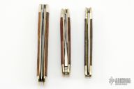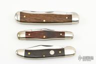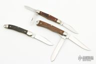 These Slipjoint by Queen Cutlery feature clip point blades with nail nicks. The handle is comprised of nickel silver bolsters and wood covers, brass liners and steel backspring. Have a few light scratches, otherwise excellent condition.
