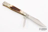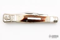 This large slipjoint with "New Orleans Knife" engraved on the blade. Nickel silver bolsters, stag scales, brass liners, stainless steel springs. Comes with original box. Excellent condition.