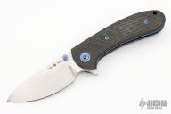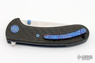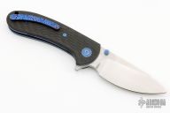This Lynx flipper by MassDrop is an Eric Ochs design, it features a hand rub satin finish blade with dual thumbstuds and notched flipper. The handle has mokuti pivot collars, milled carbon fiber scales, anodized titanium liners, carbonfiber backspacer, mokuti clip with hidden screws. Comes with zippered case. Excellent condition.