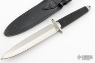 This Tai Pan from Cold Steel features a satin finished double-edged blade, .189" blade stock and 1.339" blade depth, hidden tang construction. The handle has a stainless steel guard and pommel, and rubber grip. Comes with original black leather sheath. Has a few light scratches, otherwise excellent condition.
