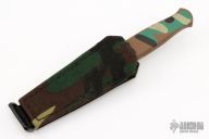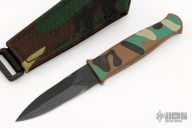 This Loveless-style Gerber Guardian Boot Knife has a double edged black blade with camo aluminum handle, .137" blade stock and .809" blade depth, hidden tang construction. S/N K3929S. Excellent condition. Comes with camo nylon sheath with boot clip. Excellent condition.