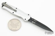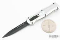 "Introducing an OTF like none-other.. The new Infidel® is rapidly making believers out of many a skeptic. Built for strength and reliability the patent pending double-action mechanics get it done over the long haul. Grab on and you will find the handle grip rock-solid with its patented machined in Presidio® style bi-directional tread pattern, and overall generous sizing for gloved hands. Intuitively pressure the release-slide forward and its spear-point edged steel fires and locks up with a unique three-point retention system with amazingly negligible blade play. Reverse the process and the blade retracts in a rapid blur of motion. The Benchmade Infidel is a special operator’s fantasy come true." Black coated blade. Excellent condition. Limited Edition #178. Comes with original box and papers.