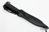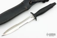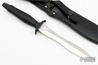The Mark II is one of the best selling knives of all time. First introduced in 1966, this tactical knife is serialized for collectors. Satin finished double edged partially serrated blade, .243" blade stock and .926" blade depth, hidden tang construction with a black aluminum handle. This knife is Serial #067495. Comes with a black leather sheath. Has a few lightly pitted spots on the blade, otherwise excellent condition.