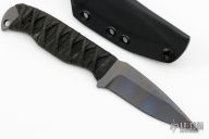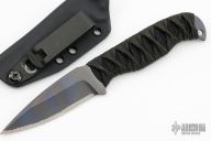 This Magni by Joe Watson features an anodized titanium blade with a carbonized edge, .159" blade stock and .990" blade depth. The handle has flat black cord wrap. Comes with a kydex sheath. Excellent condition.