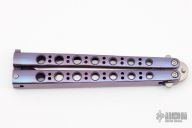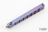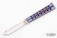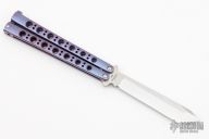 This Model 47A Balisong has a stonewashed tanto blade. Handle is orange peel finished and anodized titanium. Excellent condition. Comes with original box, papers and nylon velcro sheath. Excellent condition.