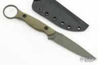 The Anaconda’s iconic ring measures 1.125”, which allows for an easy draw, with or without gloves, and its blade features a rounded convex edge that allows for smooth slices. Our signature snake scales handle minimizes the risk of the knife sliding out of your hand when working in wet conditions, while still maintaining smooth and comfortable contours if concealed against the body. Constructed of CPM S35VN Steel, with a Shadow Black KG Gunkote finish, the Anaconda is made to operate in nature’s toughest environments with little-to-no corrosion on the blade.