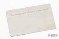 A titanium credit card knife, with a razor sharp carbidized edge. Unlike some other credit card tools, built for a singular purpose - to give you a razor sharp edge that you can always have with you. Constructed from .027" thick 6Al-4V titanium, the CC-L is the exact same size and shape as a normal credit card knife, and is thin enough to flex slightly, so you won't even know you're sitting on it. Deeply impregnated carbides at a Rockwell Hardness of 72 provide a long lasting, razor sharp cutting edge. The perfect back up blade for any situation.