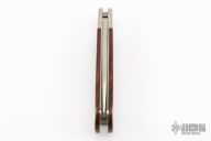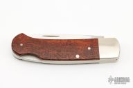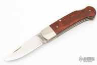 This lockback folder by Phil Boguszewski features a satin finished blade with nail nick. The handle has nickel silver bolsters, wood scales, nickel silver liners. Has a couple light scratches, otherwise excellent condition. The consigner bought this knife from Phil in 1985.