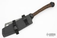 This Hog Splitter by James Helm features a hand forged clip point upswept blade with .234" blade stock and 3.75" blade depth, hidden tang construction. The handle has hemp wrap. Comes with a kydex sheath. New from Maker at the Texas Blade Show 2023.