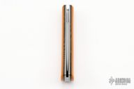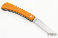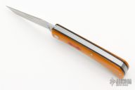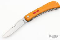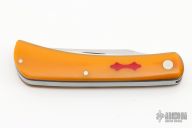 This slipjoint by Matt Collum features a hand rub satin finished blade with nail nick. The handle has vintage Westinghouse cream orange xxx paper micarta covers, WWII era black canvas micarta liners, nickel silver/stainless steel pivot, stainless steel liners and spring. ed paper micarta shield. Has half-stop, flush in all positions. Comes with a zippered case. New from maker at the 2023 Blade Show Texas. These are as nicely done and as clean as any!