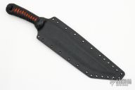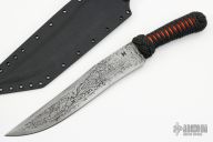This knife by James Helm features a hand forged blade, .224" blade stock and 2.10" blade depth, hidden tang construction. The handle has a paracord wrap that has been epoxied. Comes with a kydex sheath set up for TekLok. New from maker at the 2023 Texas Blade Show!