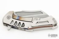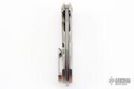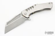 This Warnaught by Eric Luther features a matte finished blade with milled bevels. The handle has a satin finished titanium frame, backspacer and tip up clip. Rides on bearings, nice detent, lockup and blade seating. Comes with a zippered case and COA dated 3/15/23. New from maker at the 2023 Blade Show Texas.