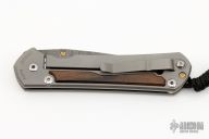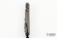 The idea behind the Sebenza has never wavered: to craft the best pocket knife in the world. Premium materials, paired with pristine finishes, and a bank-vault lock-up— all within an incredibly light, precision-made tool. That commitment continues with the new Sebenza 31 with a Ceramic Ball Interface. Like the very first Sebenza, it delivers the same warm “click” and heirloom quality produced from aerospace tolerances. The Sebenza 31 brings finer details to an already fine knife — and another steady, reliable step forward. This one has a Chad Nichols Stainless Boomerang Damascus blade, and bead blasted titanium frame with bog oak inlays. Comes with original box, leather slip sheath and papers dated October 14, 2021. New condition.