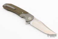 The Maxace Golaith boasts m390 blade steel, effortless deployment, and an ergonomic titanium handle. Its clip point blade tackles heavy-duty cutting tasks and precision work with ease. This model has a stonewash finished blade and bead blasted titanium bolsters with micarta scales with a matching backspacer and pocket clip.Includes the original box. Excellent Condition.