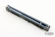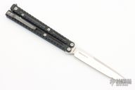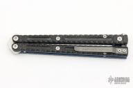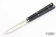 Obsidian Balisong collaboration between from Maxace & Midnightcat Studios. This knife features a spear point blade with satin grinds and tumbled flats.  The handle features milled G10 scales over anodized titanium liners.  Stainless steel tip up pocket clip and T-latch.  Includes the original padded zippered case and box.  Excellent Condition.