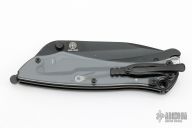 This Griplock Folder by Boker features a black blade with dual thumbstuds, notched thumbrest and flipper. The handle has clear plastic scales and a silver aluminum frame, has a tip up stainless steel clip. Comes with original box. Excellent condition.