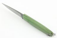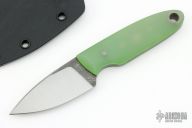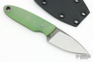 This knife by Bradshaw Blades features a satin finished blade, .082" blade stock and 1.129" blade depth, full tang construction. The handle has jade G-10 scales with green G-10 liners. Comes with a kydex sheath and zippered case. Has a few light sheath marks, otherwise excellent condition.
