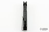 The changes made to this second version:  Extended to three inch cutting edge (still considered legal carry in most jurisdictions.)  Weight reduced to 4 ounces, jimping removed from the flipper tab and under the tab for a more comfortable fidget factor.  Pocket clip can be moved to the left side.  All hardware, clip and screws are titanium with T8 non-strip body screws.  We kept M390 as the blade steel with the same blackwash finish and ball bearing action.