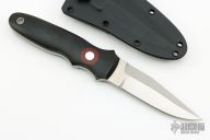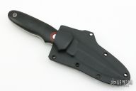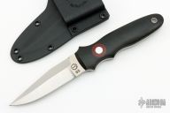 This KM-6 Arkansas Toothpick by Dozier knives features a satin finished blade with a false top edge, .19" blade stock and .94" blade depth, full tang construction. The handle has black linen micarta scales with red linen micarta insert and aluminum pins and lanyard hole. Comes with a kydex sheath. Has a couple light scuffs excellent condition otherwise.