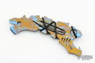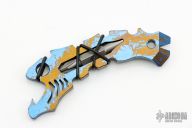 The Pry-Anha tool from Thompson Knife and Tool is crafted from 3/16" thick 6AL 4V titanium and has a custom anodized finish. This unique piece features a hex drive, #2 Phillips 8-10 flat head double ended bit (secured by o-rings), cut out to fit various sized bolt heads, keyring hole, scraper, bottle opener, box opener, nail puller, and pry tool. Tool is new from Thompson Knife and Tool. 3.5" long.